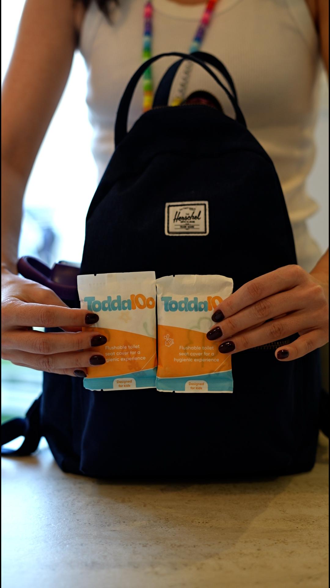 Toddaloo covers are thick, soft, and designed to actually stay put—no more flimsy, slippery covers like the ones on airplanes. They're also flushable and biodegradable, so you get a clean, comfortable experience without worrying about clogging or waste